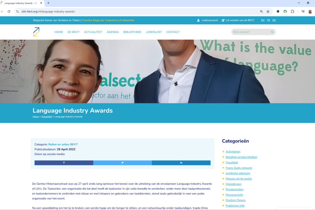 De Belgische Kamer van Vertalers en Tolken (BKVT)